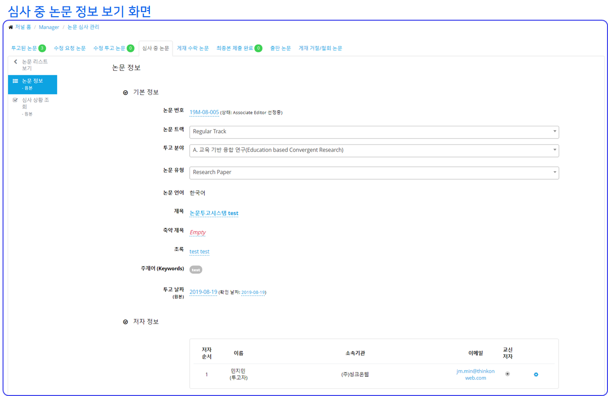 논문투고 시스템 [관리자] - 전체 논문 정보 보기(Manuscript Information Overview) (0) | 2019.08.14 |