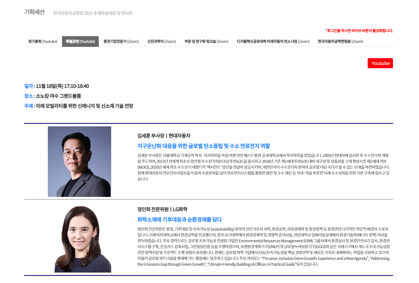 한국자동차공학회에서 2021 한국자동차공학회 추계학술대회 및 전시회를 씽크온웹과 함께 진행해주셨습니다.