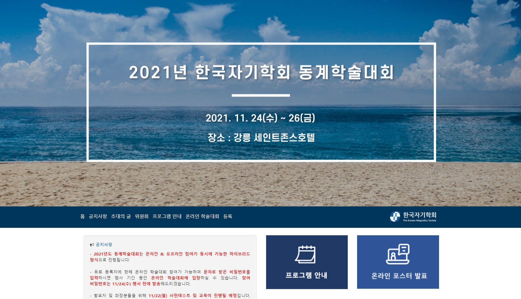 ■ 2021년 한국자기학회 동계학술대회 홈페이지