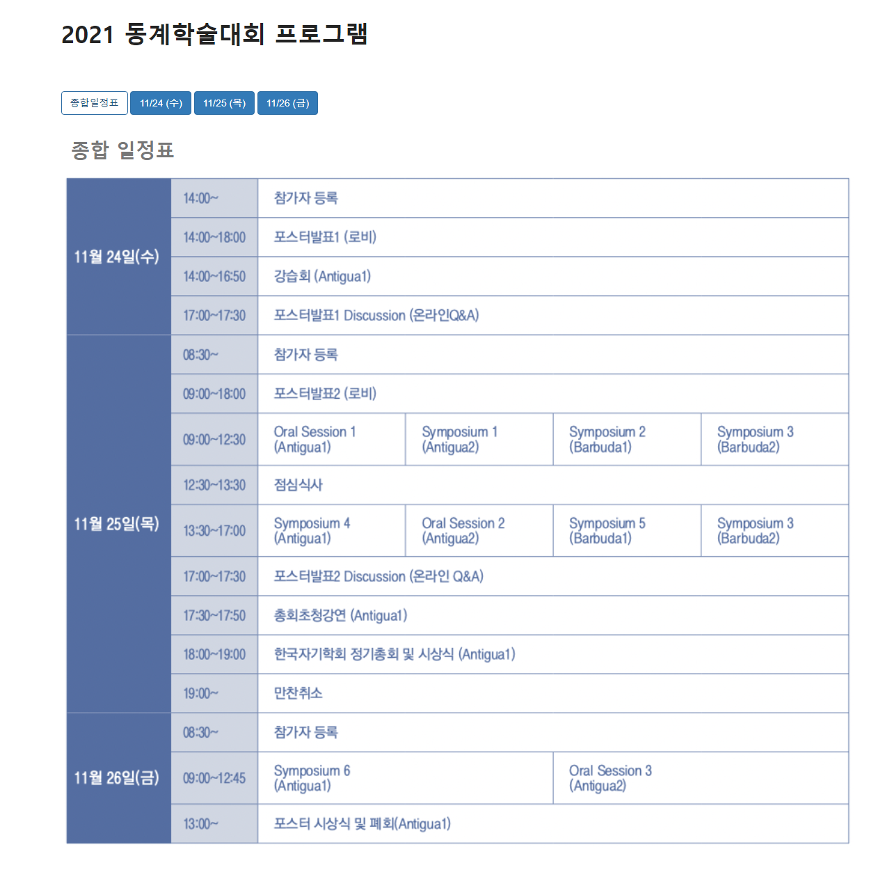 학술대회는 2021년 11월 24일 수요일 부터 26일 금요일까지 3일간 강릉 세인트존스호텔에서 온오프라인 하이브리드로 진행되었습니다.