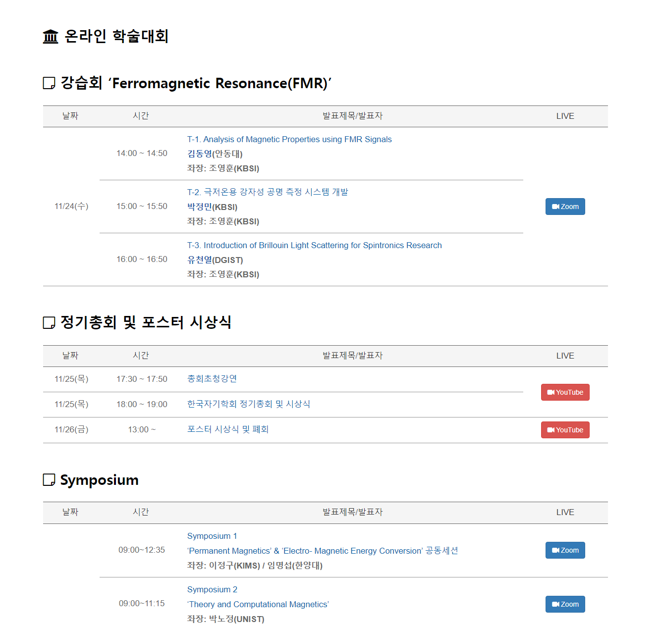 씽크온웹의 고객사인 한국자기학회에서 지난 동계학술대회에 이어 올해 2021년 동계학술대회도 씽크온웹과 함께 해주셨습니다.