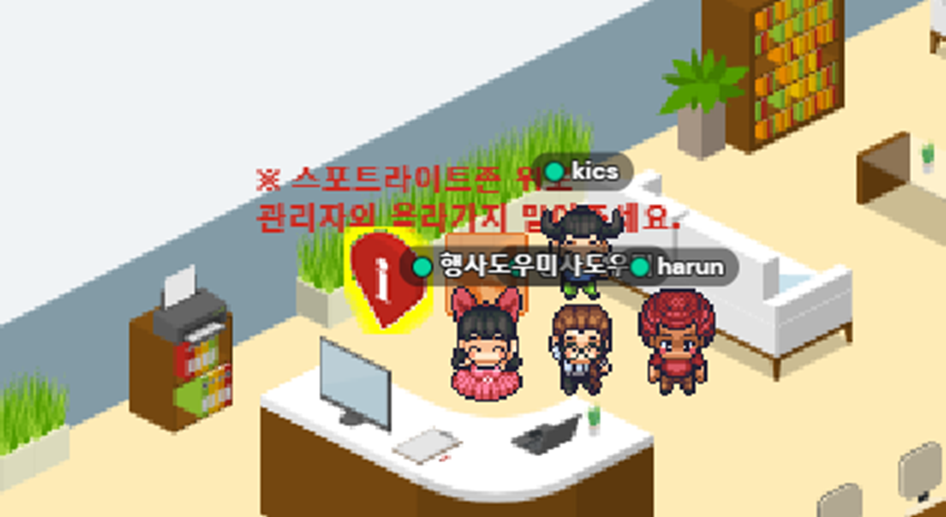 행사에 참여한 다양한 참가자들의 캐릭터가 함께 사진(스크린 샷)을 찍을 수 있는 장소입니다.