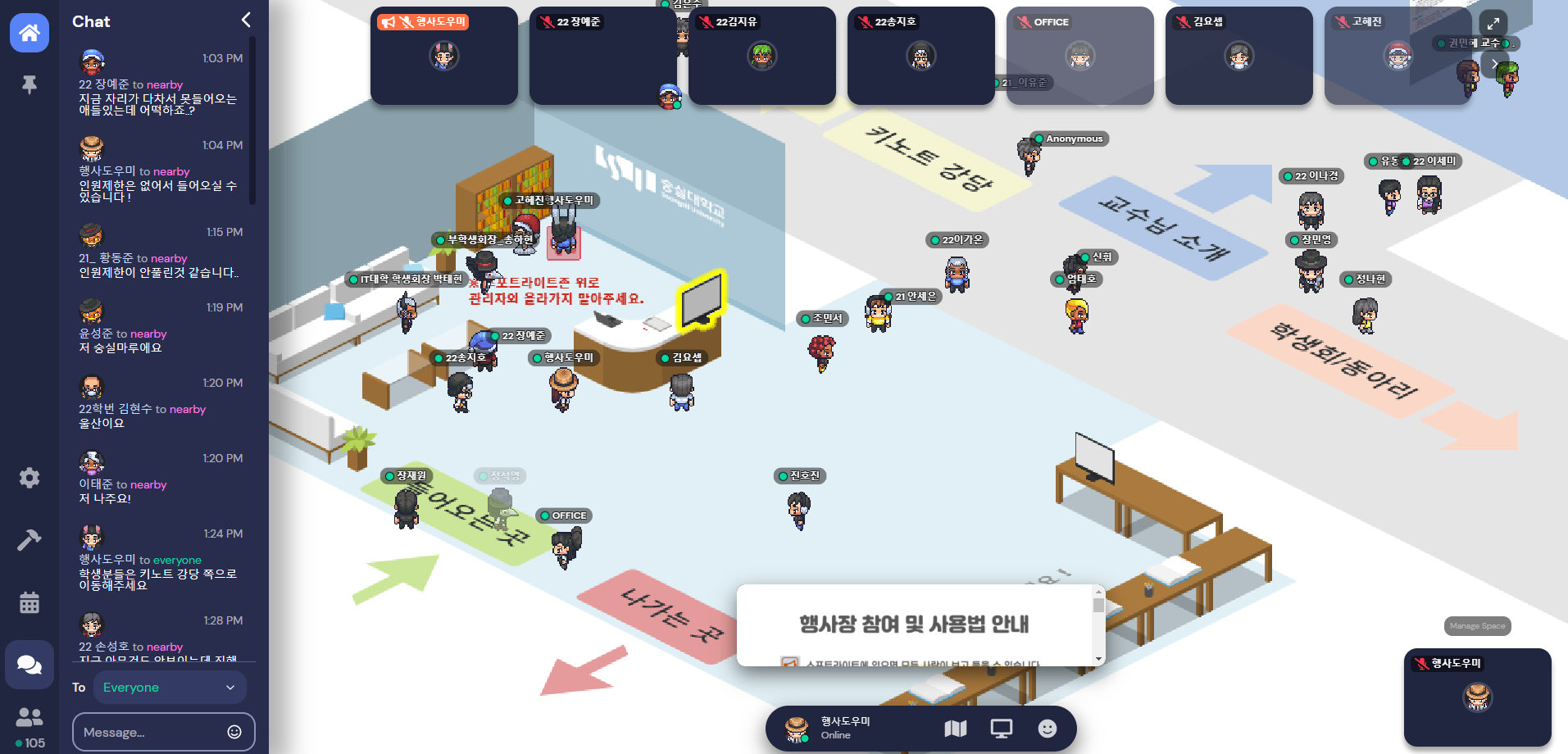 행사는 메타버스를 활용하여 게더타운으로 2022년 3월 4일(금)에 진행되었습니다.