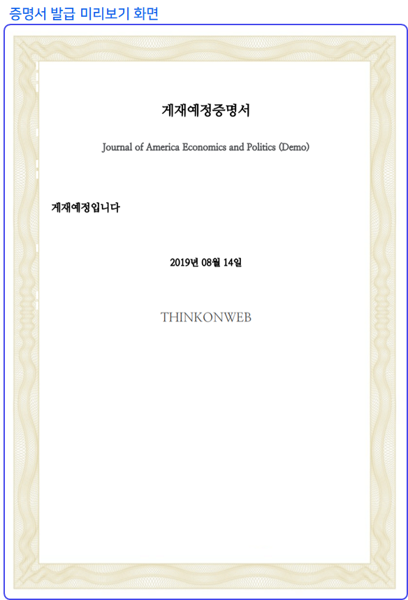 ❶ 증명서 발급(Issue certificate) 메뉴는 게재 예정 증명서 등 각종 증명서를 이메일로 발급해주는 기능입니다.