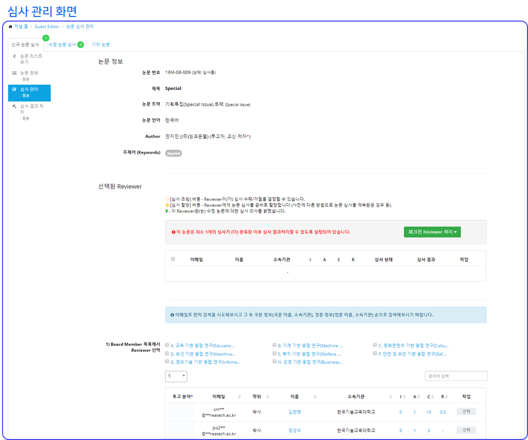 논문투고 시스템 [초빙 편집장] - 논문 심사 관리(Review Process Management)