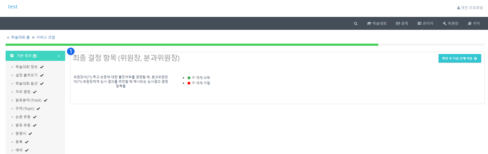 ■ 학술대회 설정(Conference Configuration) - 최종 결정 항목(Decisions)
