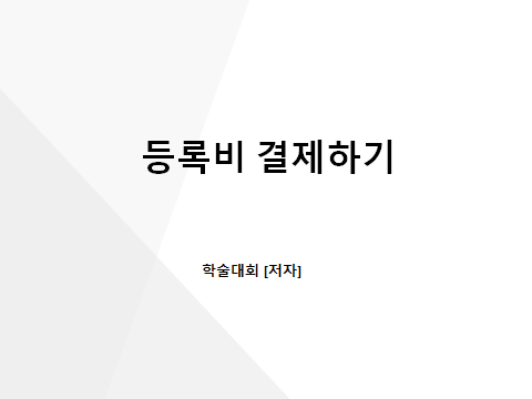 ❹ 필수항목과 선택항목의 선택이 모두 이루어지면 결제 버튼을 눌러 결제를 진행합니다. 결제는 학술대회 설정에서 등록비 리스트 필수 여부에 필수를 선택하고, 논문 관련 등록비를 O로 했는지 X로 했는지에 따라 약간의 차이를 보이는데 각각 경우의 화면은 다음과 같습니다.