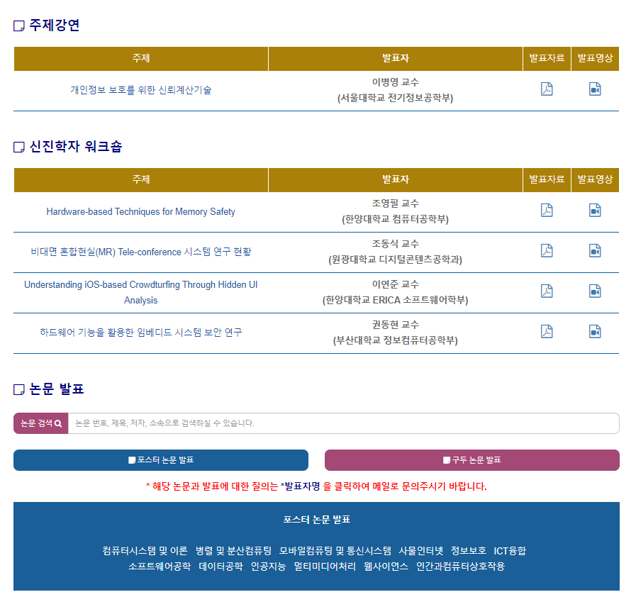 유료 등록자의 경우 문자로 전송된 비밀번호를 입력하면 행사 기간동안 학술대회 행사 홈페이지에 입장이 가능합니다. 입장 후에는 발표 논문(pdf) 다운 및 발표 영상(mp4, 다운불가)을 시청할 수 있습니다.