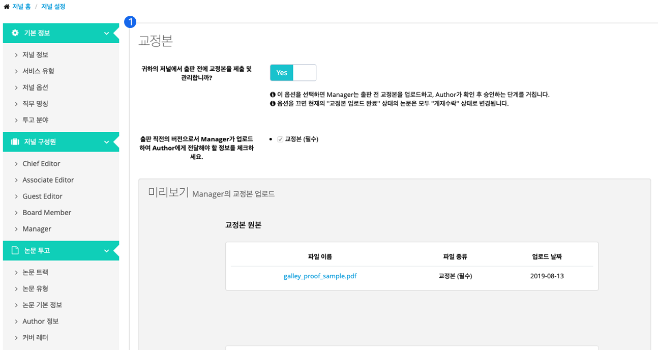 ■ 저널설정(Journal Configuration) - 교정본(Galley Proof)