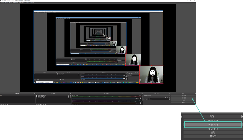 녹화를 모두 마친 후 중단버튼을 클릭하여 녹화를 중단합니다.