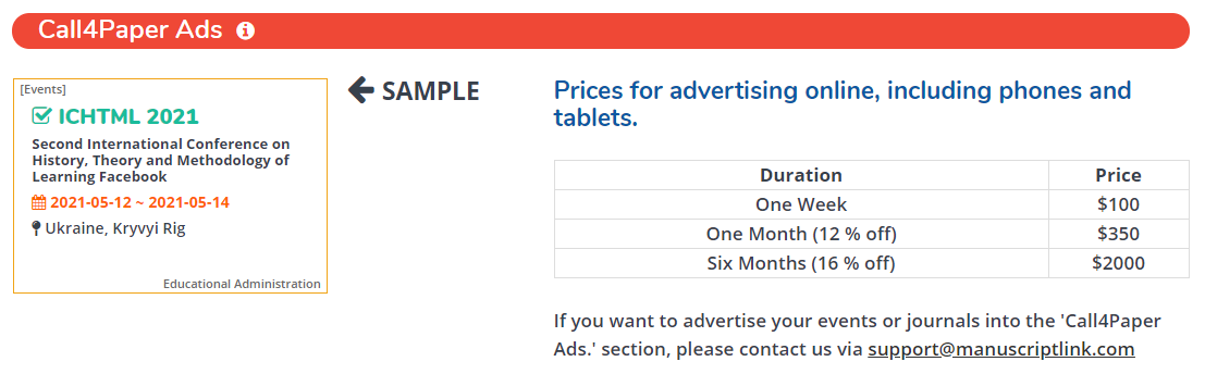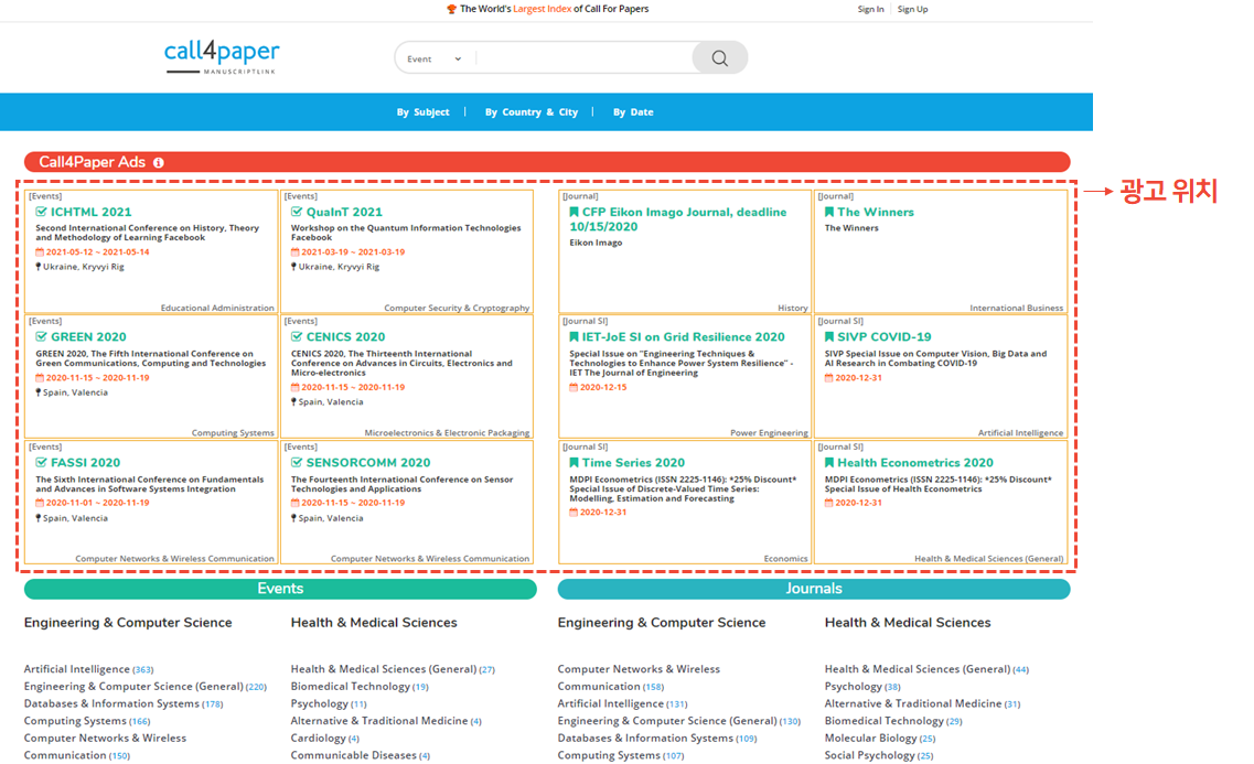 최근 CALL FOR PAPERS에서 광고를 모집중에 있으며 저렴한 가격으로 학회 행사 광고를 게재할 수 있습니다.