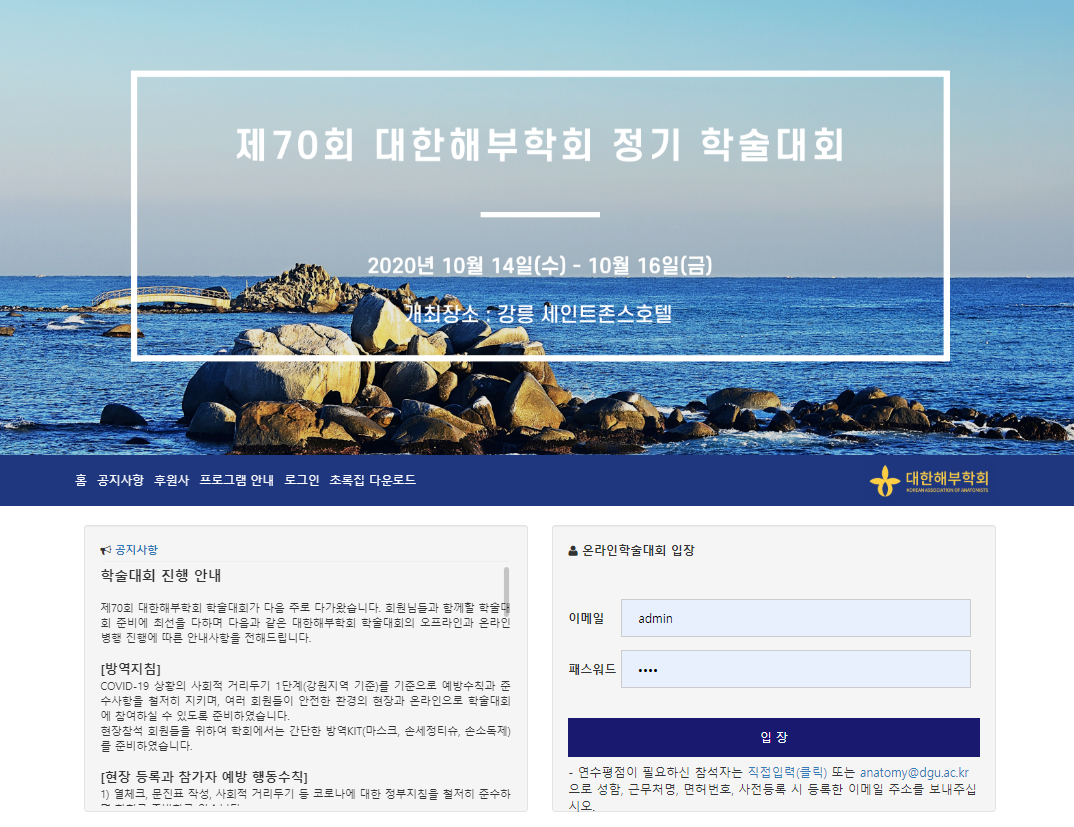 제70회 대한해부학회 정기 학술대회를 씽크온웹과 진행해 주셨습니다.