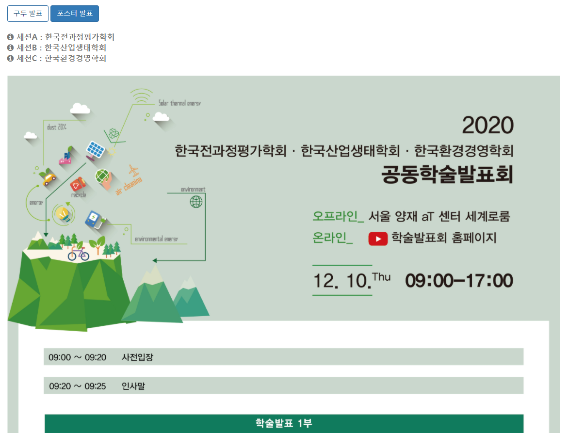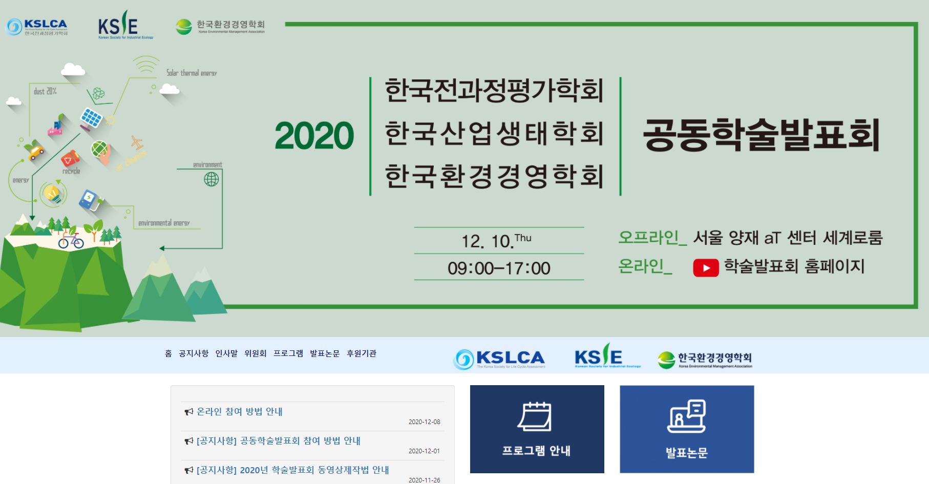 ■ 2020 한국전과정평가학회 · 한국산업생태학회 · 한국환경경영학회 공동학술발표회 홈페이지