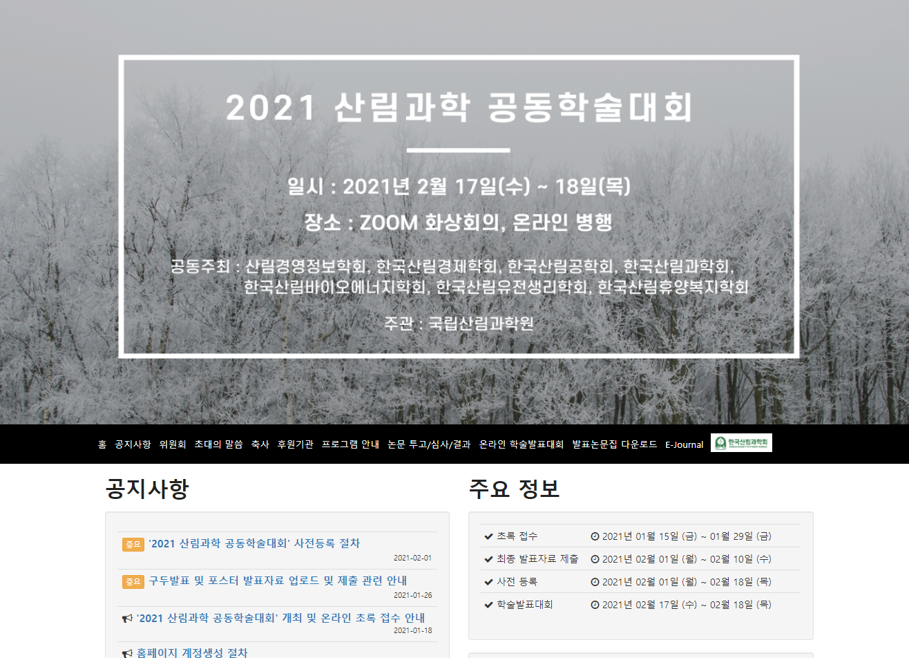 ■ 2021 산림과학 공동학술대회 홈페이지(www.manuscriptlink.com/society/ksfs/conference/ksfs2021winter)