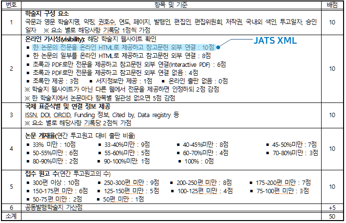 또한 씽크온웹에서는 JATS XML 기반의 온라인 출판을 지원하기 때문에 온라인 가시성 항목에 적합합니다.