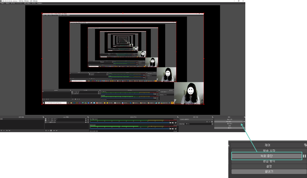녹화를 모두 마친 후 중단버튼을 클릭하여 녹화를 중단합니다.